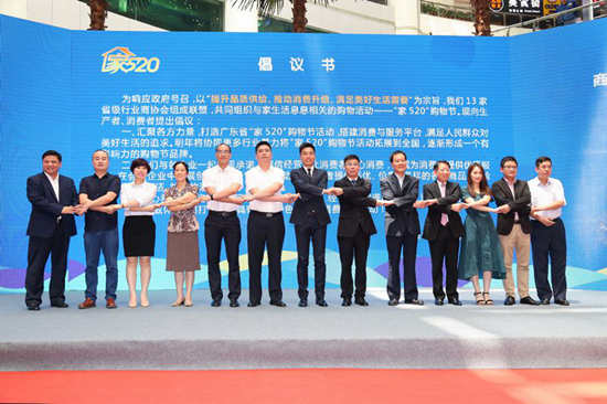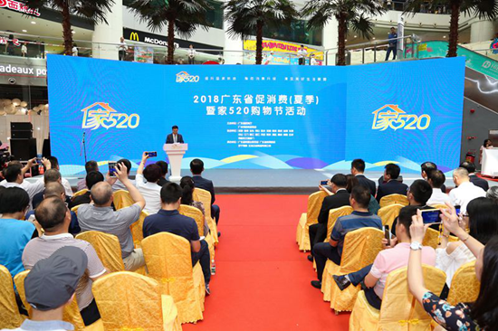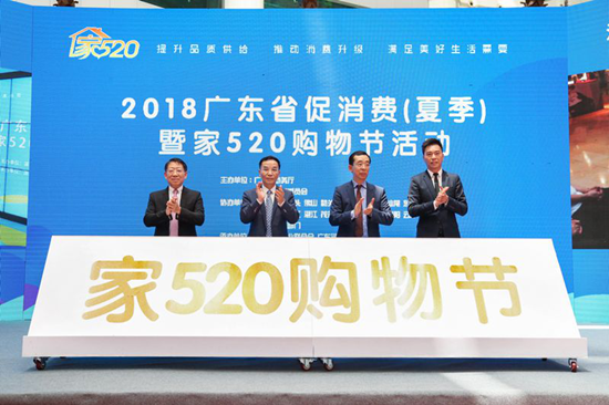 5月20日,2018广东省促消费(夏季)暨“家520”购物节活动启动仪式在广州隆重举行。本次活动由皇冠体育(中国)官方网站 、广州市商务委主办,各地级以上市商务主管部门协办,省家居业联合会、省家具商会、苏宁易购、正佳企业集团承办,以“提升品质供给、推动消费升级、满足美好生活需要”为主题,主会场设在广州,其他地级以上市均设有分会场。